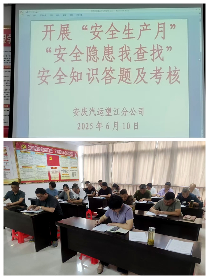 為積極響應“人人講安全、個個會應急——查找身邊安全隱患”的安全生產(chǎn)月主題號召,進一步加強客運企業(yè)安全管理工作,切實增強全體員工的安全意識與應急處置能力,望江分公司于6月10日上午精心組織了一場全員參與的安全知識答題活動,旨在讓安全知識真正扎根于每位員工心中,并切實轉(zhuǎn)化為日常工作的實際行動。