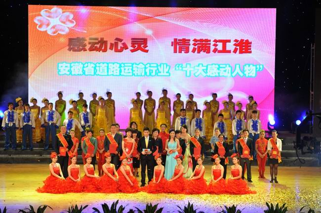 會議期間舉辦了"十一五"期間全省道路運輸行業(yè)"十大感動人物"頒獎晚會,運用視頻短片等形式對獲獎者的先進事跡進行了宣揚。現(xiàn)場群眾觀看著大屏幕上獲獎者的感人事跡,聆聽著獲獎者的樸實話語,一次次用雷鳴般的掌聲表達了敬佩和感動之情。他們的典型事跡,集中展示了道路運輸人的風采,唱響了時代的主旋律,在群眾中引起了強烈的共鳴。省交通運輸廳梅勁廳長、丁慶領副廳長及滁州市相關領導為"十大感動人物"頒發(fā)了獎杯。