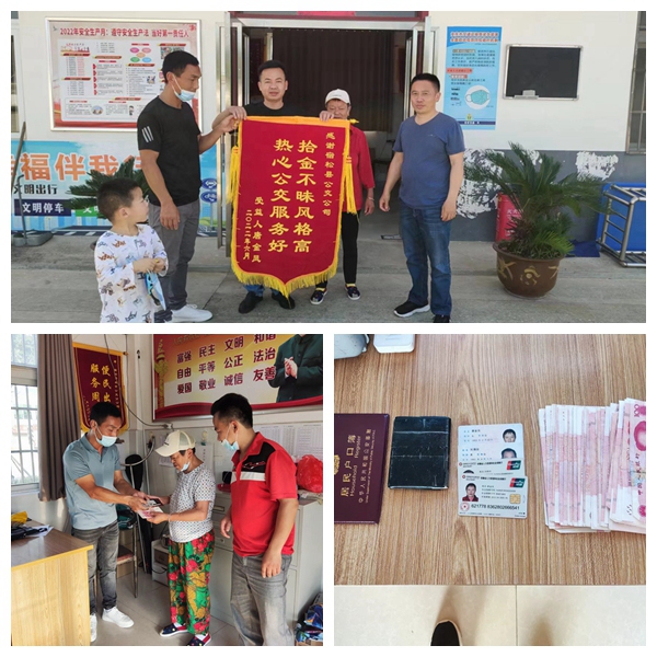 事情是這樣的,2022年6月4日下午,宿松城市5路公交車(chē)到終點(diǎn)站,駕駛員黎石保在乘客下車(chē)后對(duì)車(chē)輛進(jìn)行清潔消毒時(shí),突然發(fā)現(xiàn)車(chē)廂座位上有一個(gè)黃色布袋。打開(kāi)一看布袋里有個(gè)黑色皮包,皮包內(nèi)有現(xiàn)金、身份證、社?ǖ。黎石保原地等待一段時(shí)間,失主一直沒(méi)有出現(xiàn)。公交班車(chē)回站后,依照公司相關(guān)管理規(guī)定,黎石保第一時(shí)間將布袋上交公司。經(jīng)工作人員清點(diǎn),內(nèi)有現(xiàn)金4700元,2張身份證、2張社?,以及一本存款1.6萬(wàn)的存折。