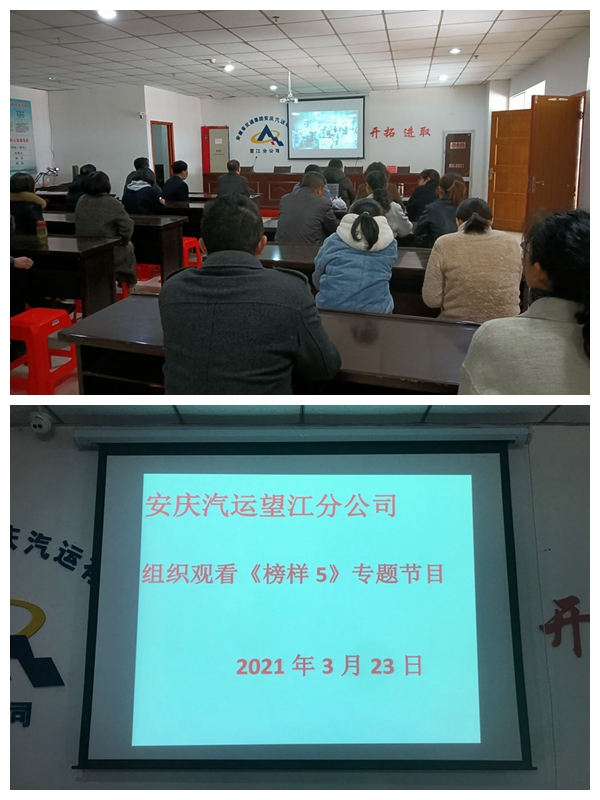 3月23日上午,望江分公司組織全體黨員和廣大職工在會(huì)議室集中觀看學(xué)習(xí)《榜樣5》專(zhuān)題節(jié)目。