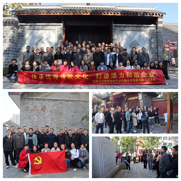 為深入貫徹習近平總書記考察安徽時的重要講話精神,進一步弘揚中華優(yōu)秀傳統(tǒng)文化,加強精神文明建設,提升黨員干部的崇德尚禮品質(zhì),安慶公司黨委于11月7日至8日,精心策劃并組織了以“傳承文化精髓,打造和諧企業(yè)新篇章”為主題的黨日活動。此次活動由公司黨委主導,桐城分公司黨支部具體承辦,市客運分公司黨支部積極參與協(xié)辦,實現(xiàn)了全司黨員干部的廣泛參與。